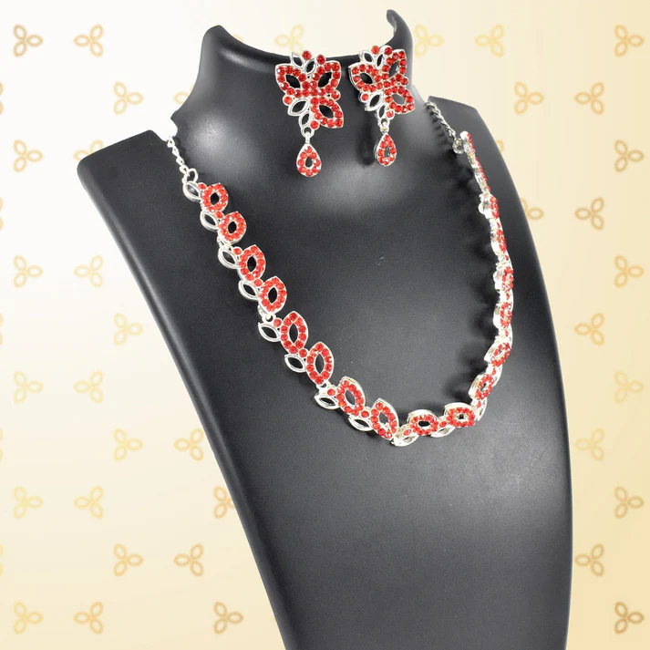 American Diamond Studded Floral Shaped Necklace With Earrings