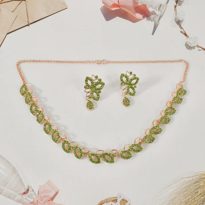 American Diamond Studded Floral Shaped Necklace With Earrings