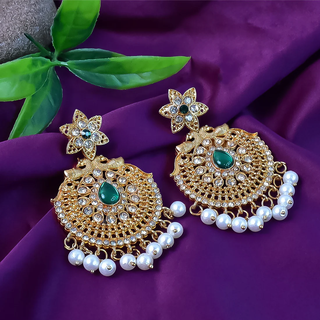Beautiful Crafted Peacock Design American Diamond Pearl Earrings (1 Pair)