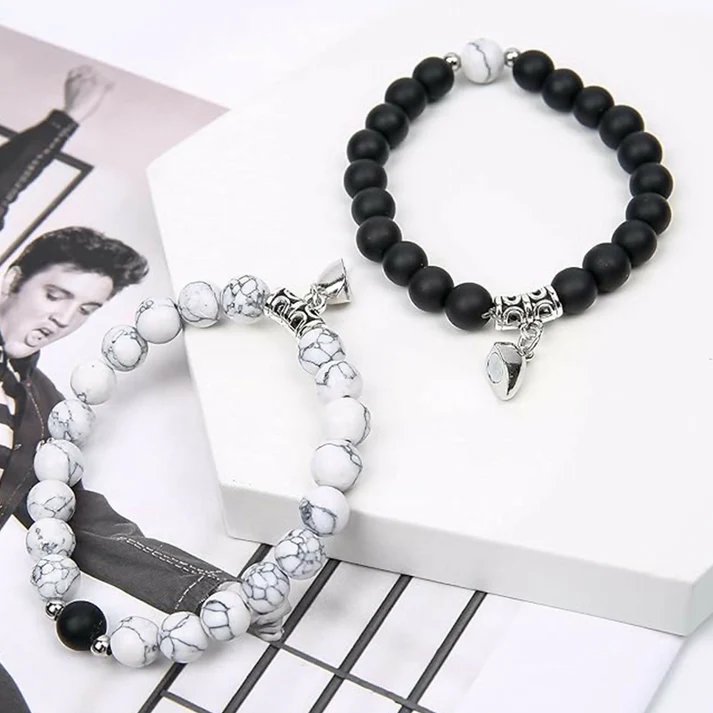 Silver Shine Magnetic Attraction Heart Couple Bracelet