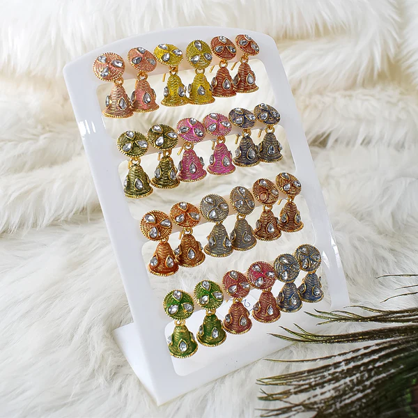 Vibrant 12-Pair Jumka Earring Set for Festive Wear